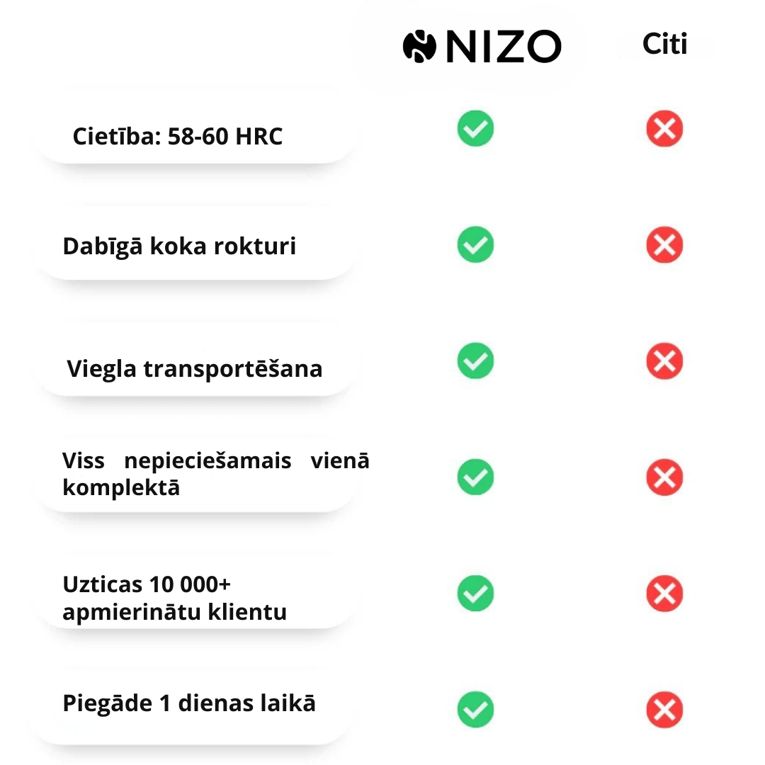 Nizo 6 gab. šefpavāra komplekts – visi svarīgākie piederumi, kas nepieciešami virtuvē, pie grila vai gatavojot brīvā dabā. Ar to jūs varēsiet viegli pagatavot gan ikdienas maltītes, gan iespaidīgas vakariņas.