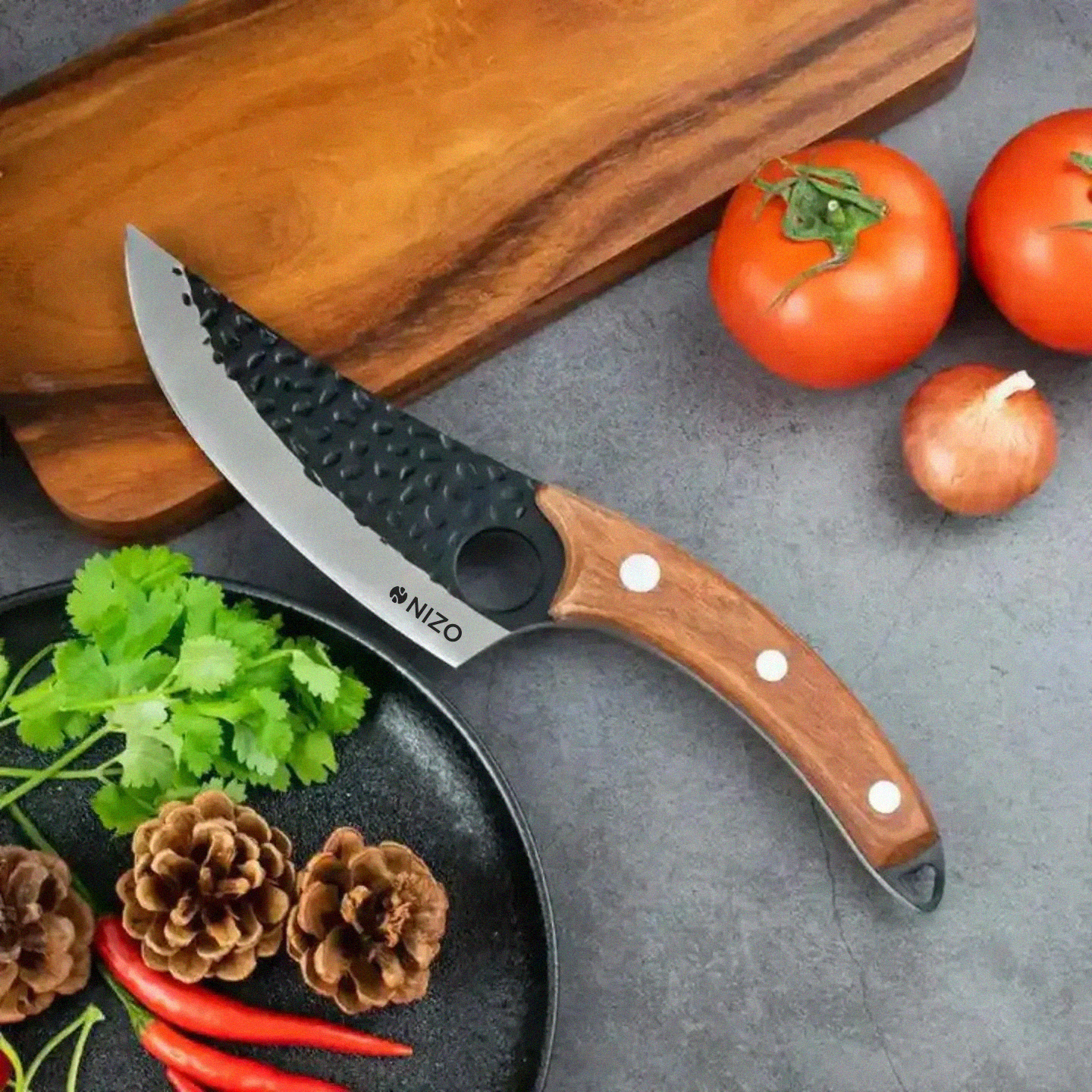 Apvienojot funkcionalitāti ar izsmalcinātu dizainu, Nizo Japan nazis nodrošina precizitāti, griežot visu, sākot no zivīm un gaļas līdz pat dārzeņiem vai augļiem. Kaltā tērauda marķējumi naža sānos samazina iespēju, ka ēdiens varētu pielipt, savukārt ar rokām pulētie rokturi nodrošina eleganci un ērtu satvērienu.