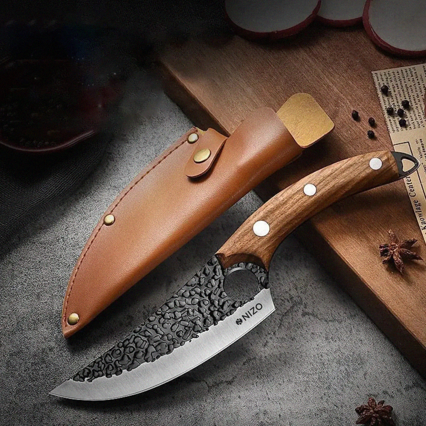 Dodies ceļojumā pa nažu izgatavošanas precizitāti, kur katra detaļa ir rūpīgi izstrādāta līdz pilnībai. Jau no naža dizaina pirmsākumiem tiek veikta plaša izpēte, lai radītu ergonomisku šedevru, kas nodrošina gan komfortu, gan funkcionalitāti. Mūsu naži tiek apstrādāti ar rokām, kas ir apliecinājums amatnieka meistarībai un precizitātei. Katrs rokturis ir precīzi izgatavots no rūpīgi atlasītas cietkoksnes, kas izvēlēta, lai galaproduktam piešķirtu izturību un eleganci. Balstoties uz nažu meistaru bagāto vēsturisko pieredzi, mēs apvienojam tradīcijas ar inovācijām, lai radītu nepārspējamas kvalitātes nažus. Mūsu naži ir izgatavoti no augstas kvalitātes tērauda, un asmeņa malas ir asas kā žilete, kas nodrošina precīzu griezumu katrā lietošanas reizē. Visbeidzot, pirms nonākšanas tavās rokās katrs produkts tiek rūpīgi pārbaudīts, lai nodrošinātu, ka tas pārsniedz klientu cerības un piedāvā vēl nebijušu kulinārijas pieredzi.